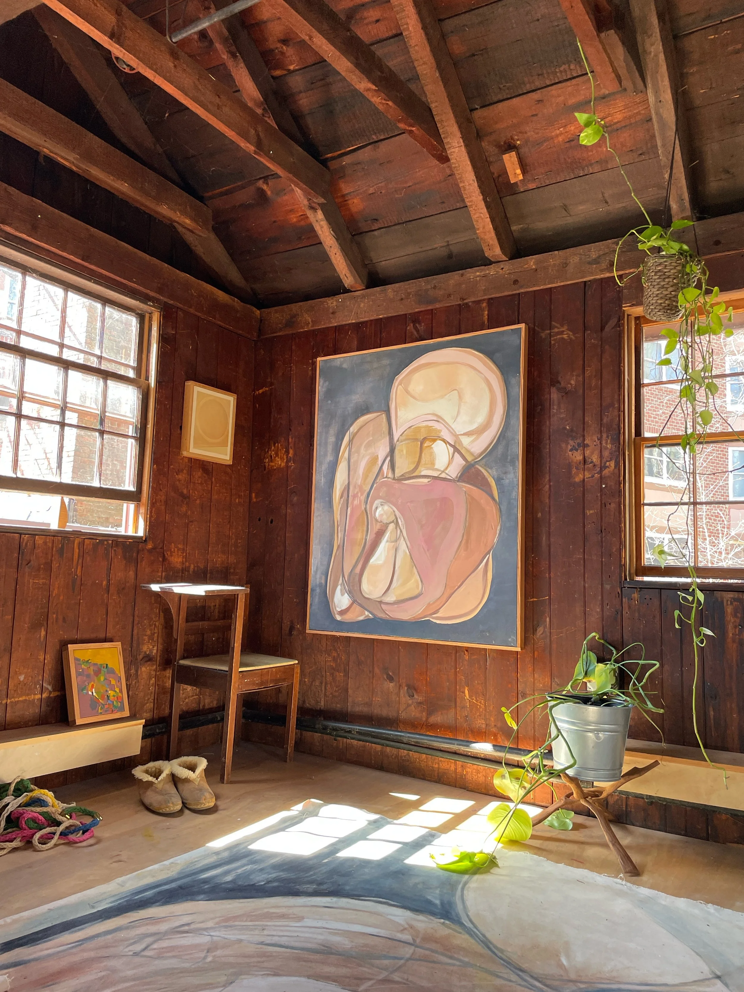 She paints each morning at her art studio/ barn at Schwamb Mill in Arlington, MA before heading off to her medical practice where she provides newborn and postpartum care for families in their homes.